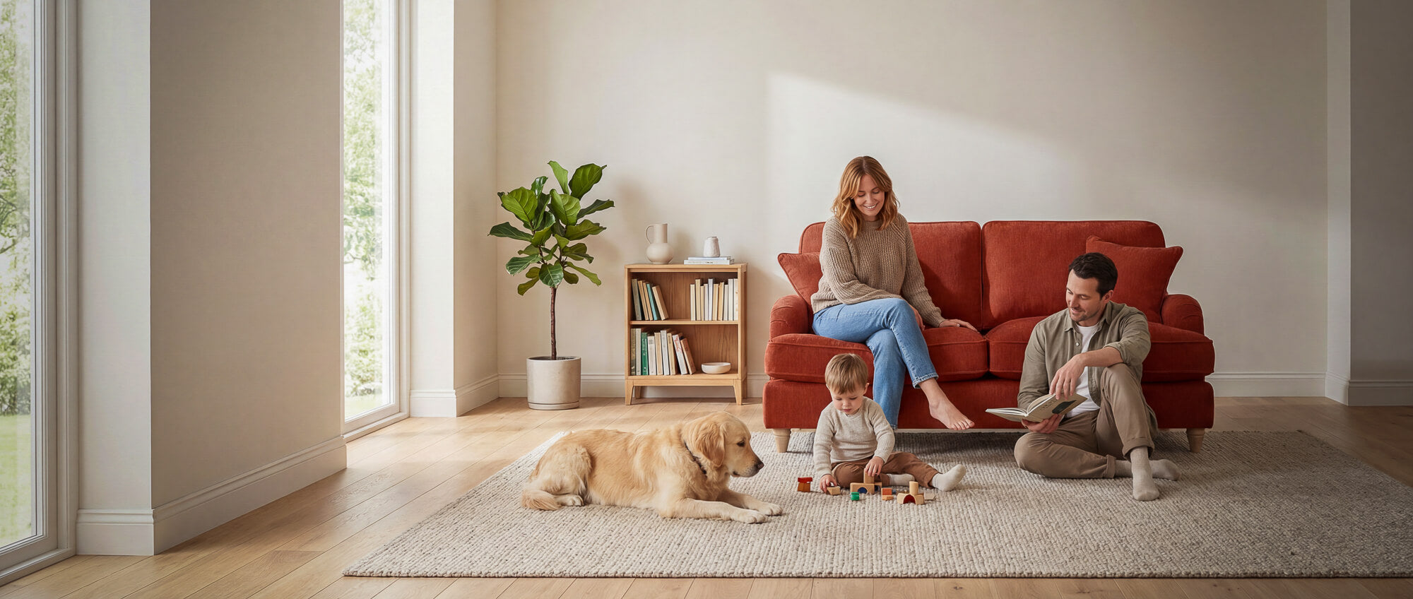 Then measure the space where your sofa will sit. To visualise this, mark out the dimensions on the floor using tape. This helps you confirm spacing, layout and whether you can move comfortably around the sofa once in place.