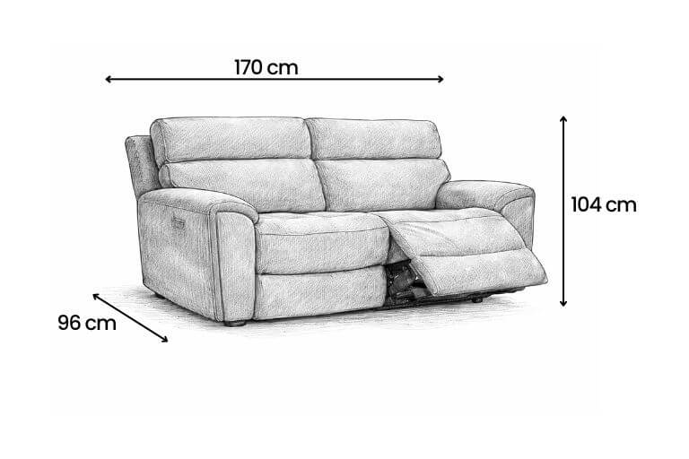 Sink into calm comfort with a 2 seater power recliner sofa built for everyday relaxation. The Atlanta 2 seater features smooth electric reclining, supportive foam and fibre cushioning, and a sleek Midnight Black fabric finish. Compact yet generous, it balances comfort and space effortlessly while built in USB ports keep devices powered as you unwind. A smart, stylish recliner sofa made for modern homes.