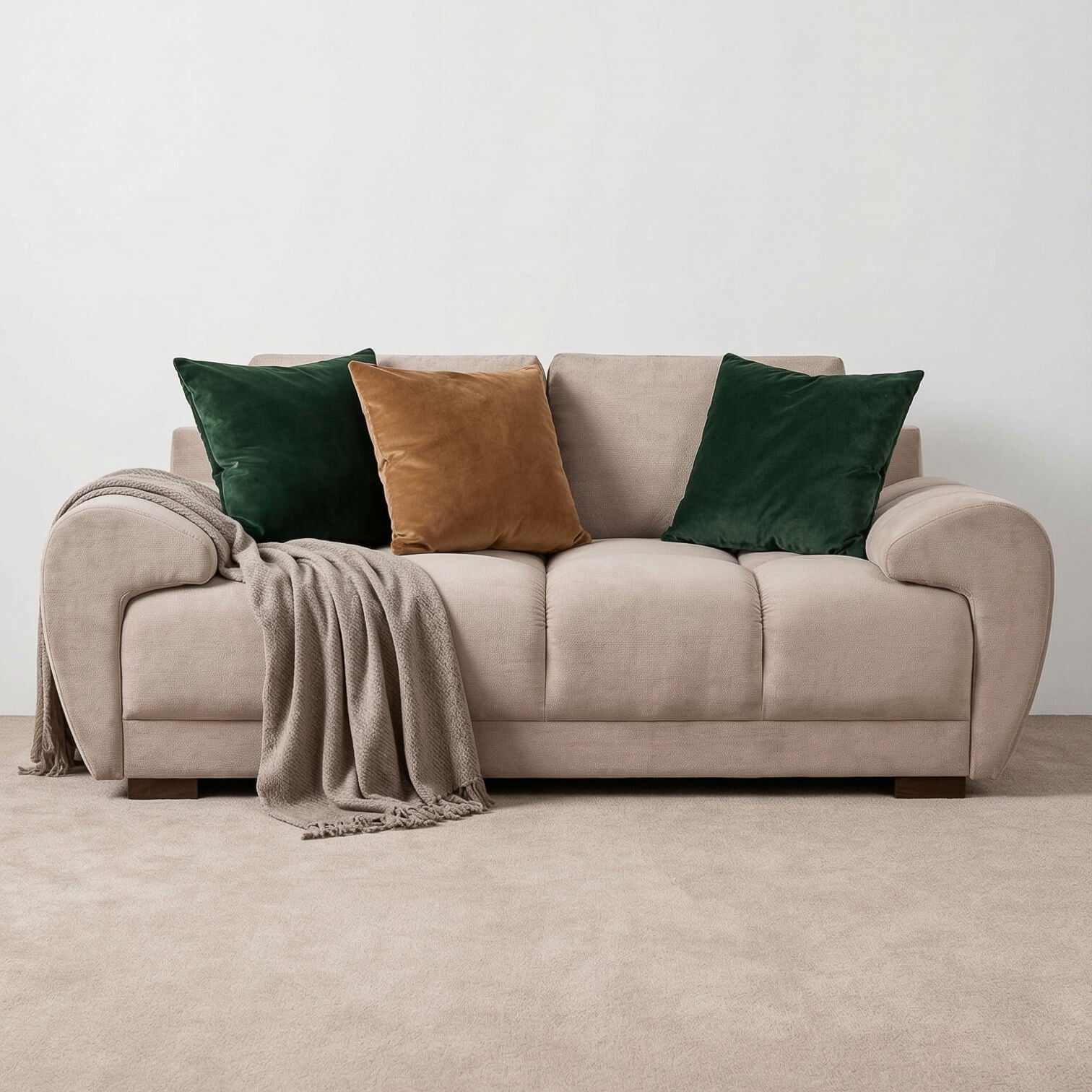 Make room for cosy sophistication with the Avoro 2 Seater Sofa in Soft Mocha. Plush velvet upholstery meets a durable hardwood frame with full back support, removable cushions, and anti-slip feet for stability. Compact yet elegant, this 2 seater sofa brings practical comfort and refined style to smaller living spaces.