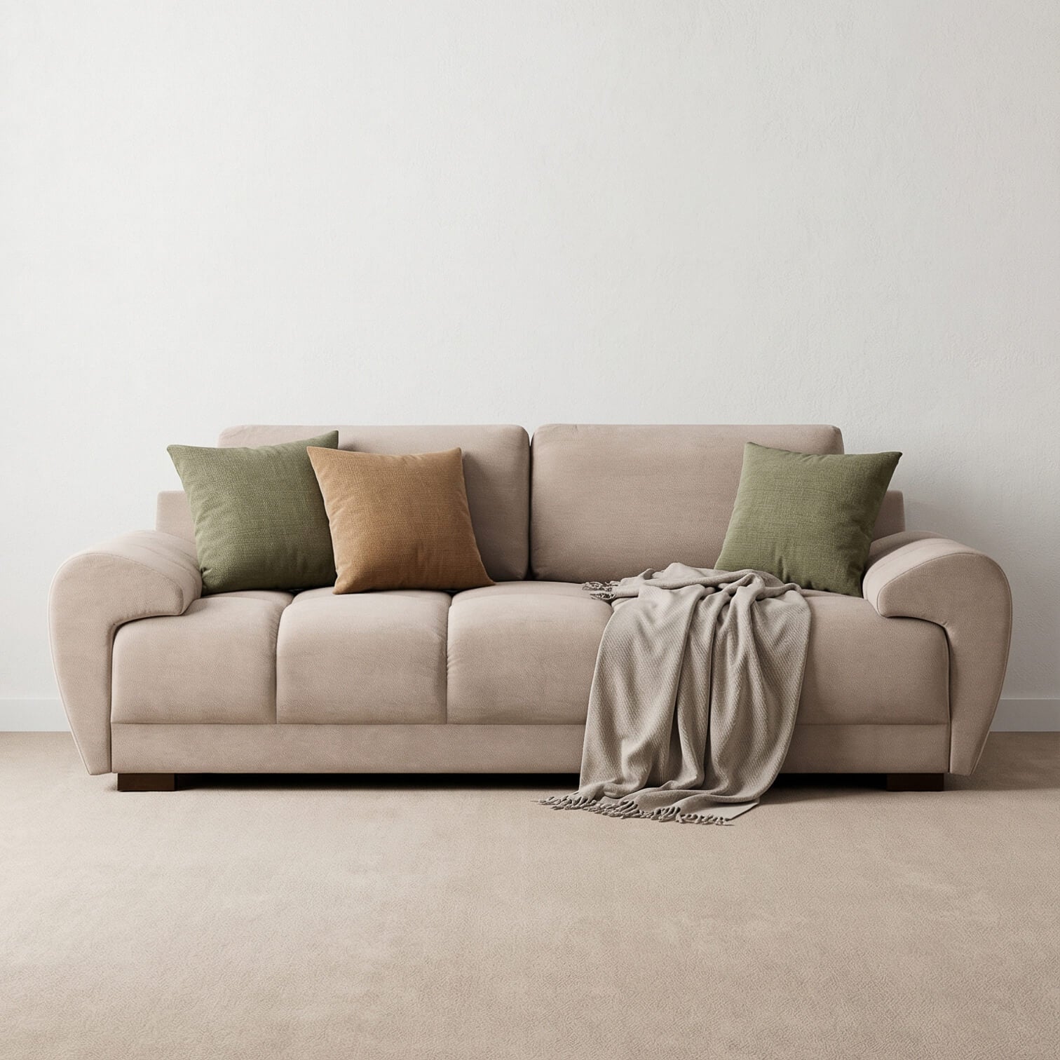 Relax in style with the Avoro 3 Seater Sofa in Soft Mocha. Plush velvet upholstery, a sturdy hardwood frame, and pocket spring seat base ensure lasting comfort. Removable cushions and full back support adapt to your needs, while subtle tufted details add modern flair. Perfect for practical, stylish everyday living.
