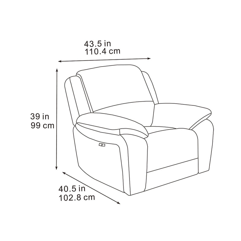 Create your own comfort zone with a power recliner armchair built for everyday relaxation. The Bellagio armchair in Ink Blue offers smooth one touch electric reclining, supportive foam cushioning and a high back for comfortable lounging. Finished in durable polyester fabric and complete with USB-A and USB-C charging, this power recliner armchair delivers modern comfort in a sleek, space-friendly design.