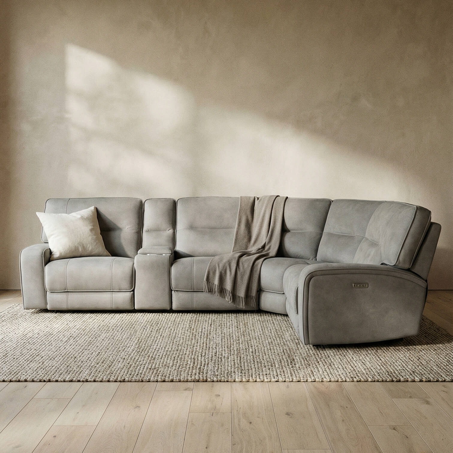 Bring cinema level comfort home with the Excalibur Dapple Beige Power Recliner Corner Sofa. This 2C2 with HC beige power recliner corner sofa features three electric reclining seats, USB charging, a drop down table with 3 pin sockets, and a storage console with cupholders. Upholstered in durable 100% polyester fabric, its deep foam seats and full back design deliver supportive comfort with a clean, contemporary finish.