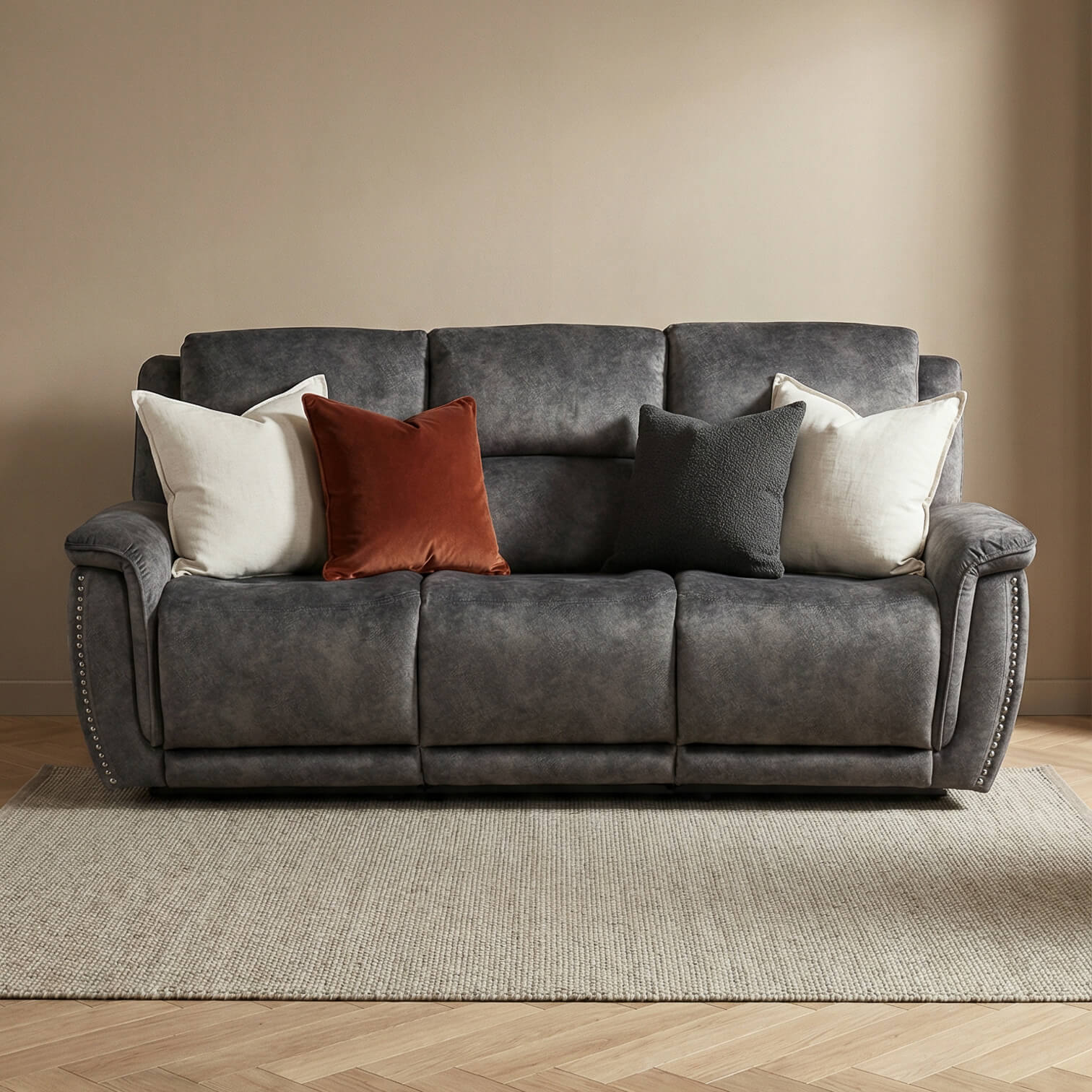 Make every moment feel more indulgent. The Majestik 3 Seater Power Recliner Sofa is designed to bring luxury into everyday living, combining smooth power reclining with plush, supportive seating. Upholstered in rich Mosaic Grey velvet, it delivers a soft, velvety feel while adding bold sophistication to your space. Built for comfort and convenience, integrated USB and USB C charging keeps devices close, making this a statement sofa that feels as good as it looks.