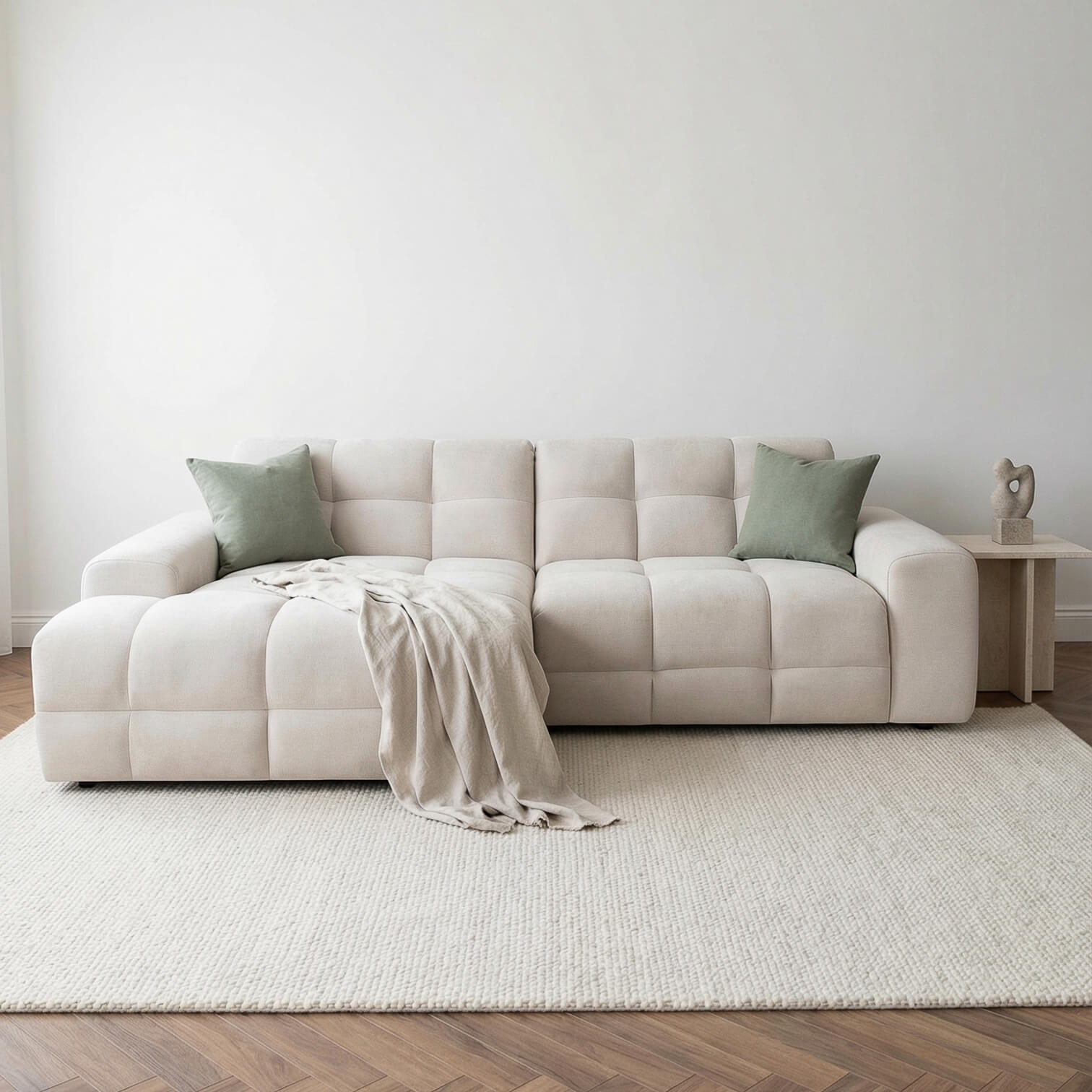 Looking for a sofa that blends style and comfort? The Javix Natural Beige Left Corner Sofa delivers. Wrapped in soft polyester with deep tufted seats and a sturdy hardwood frame, this left corner sofa fits modern living spaces perfectly. Experience the Javix Left Corner Sofa for lasting elegance and practicality.