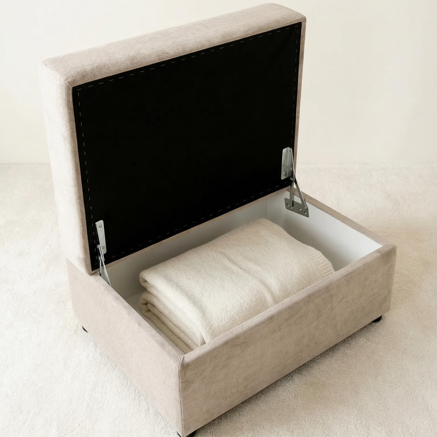 Add a cosy touch to your lounge with the Mira Footstool in Biscotti Brown. Soft fabric upholstery and a foam-filled top provide a comfy spot to rest your feet or offer extra seating. Hidden under-seat storage keeps essentials tidy, while its sleek design blends seamlessly into any modern space.