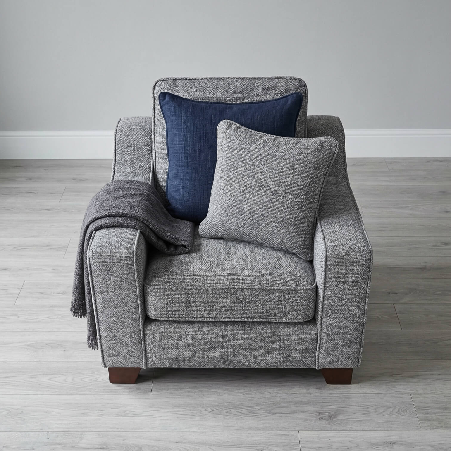The Nebra Armchair in Asher Grey delivers modern comfort in a compact size. Upholstered in durable woven polyester with removable cushions and covers, it’s practical and easy to maintain. Its solid hardwood frame and full back support make it a reliable choice for everyday relaxation.