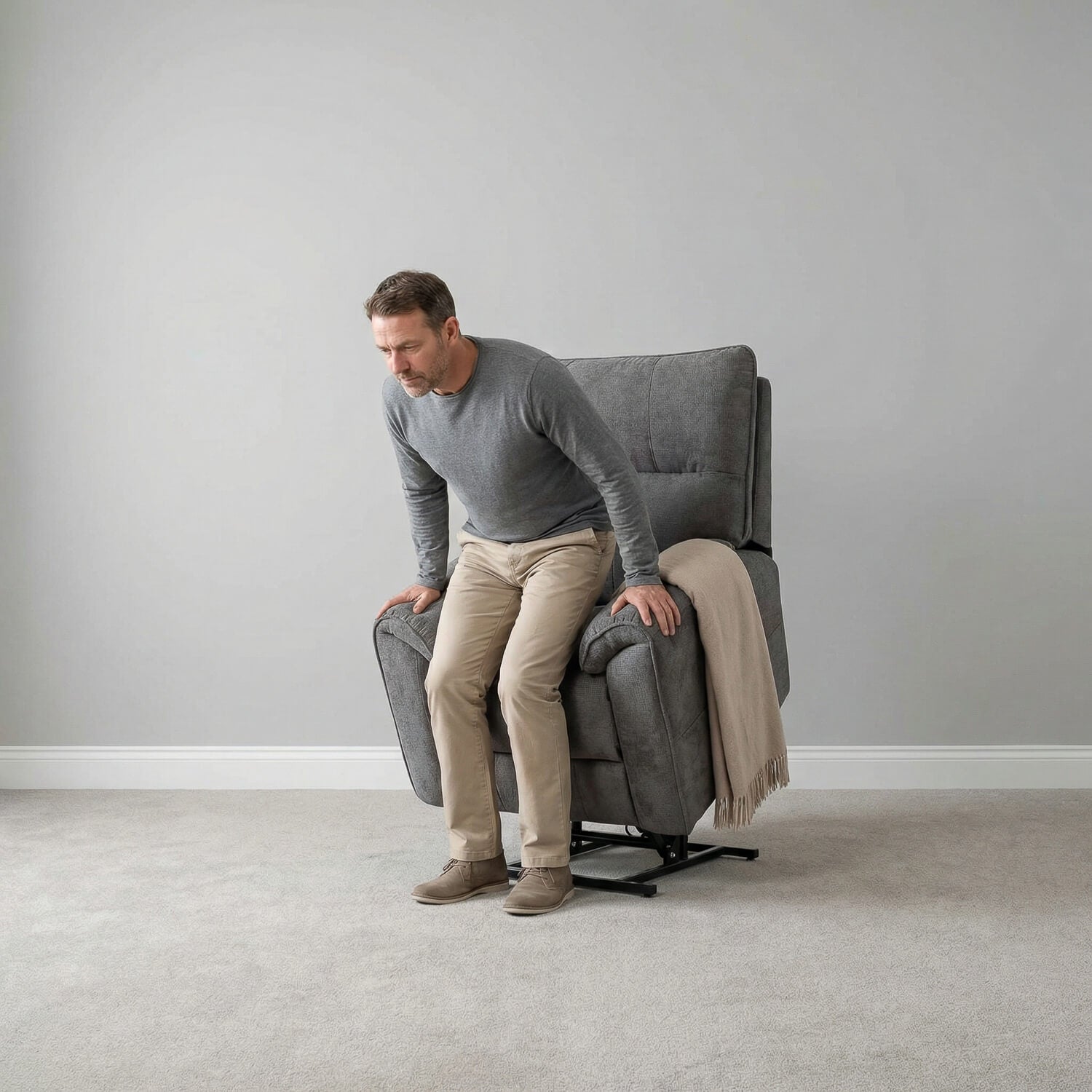 Experience comfort that adapts to you with the Novar Dual Motor Riser Recliner Armchair in Carbon Grey. Built for supportive, everyday living, this recliner armchair features dual motor control, allowing you to adjust the backrest and legrest independently for tailored comfort. Upholstered in durable fabric with a strong metal frame, it delivers smooth lift assistance and steady performance, making sitting, reclining, and standing effortless.