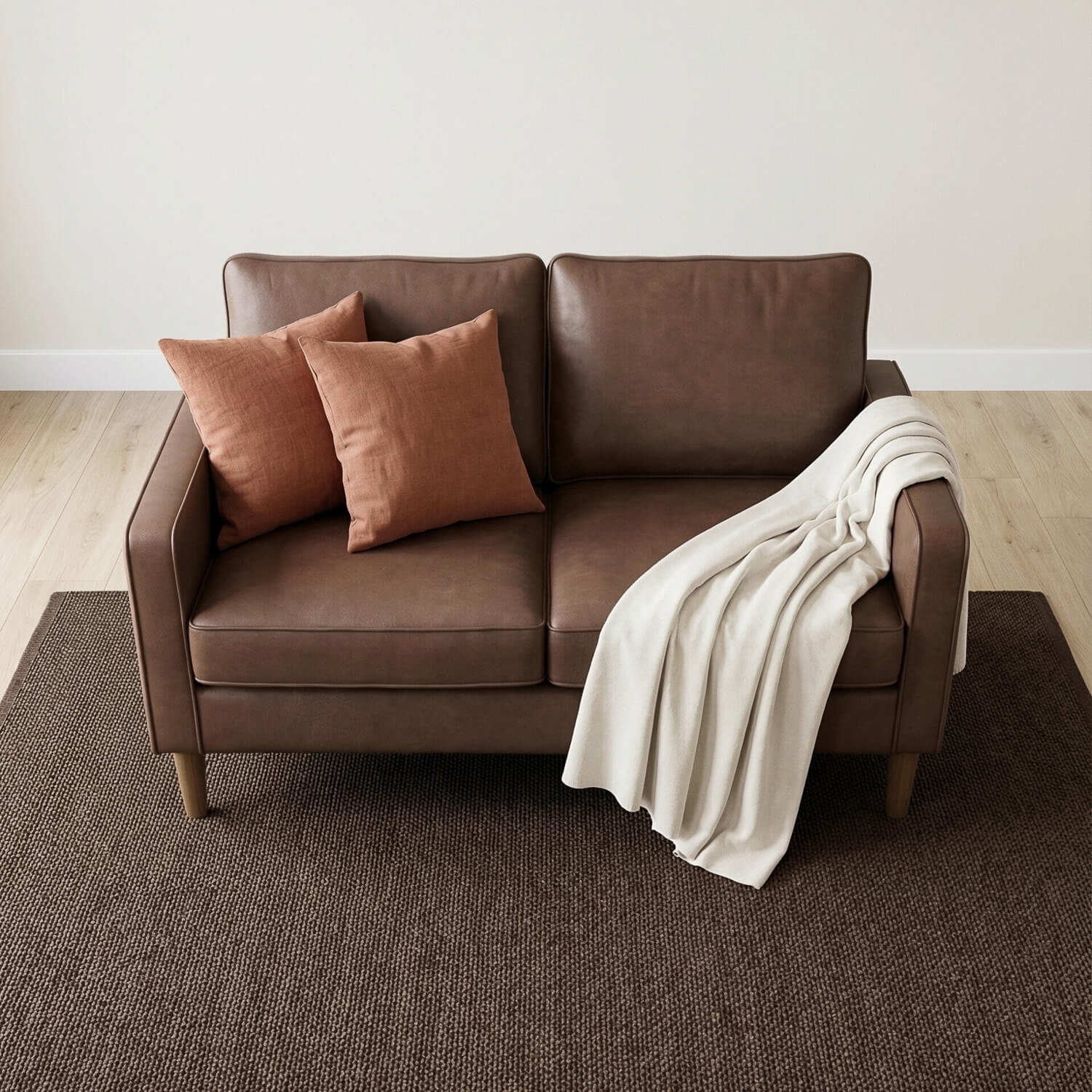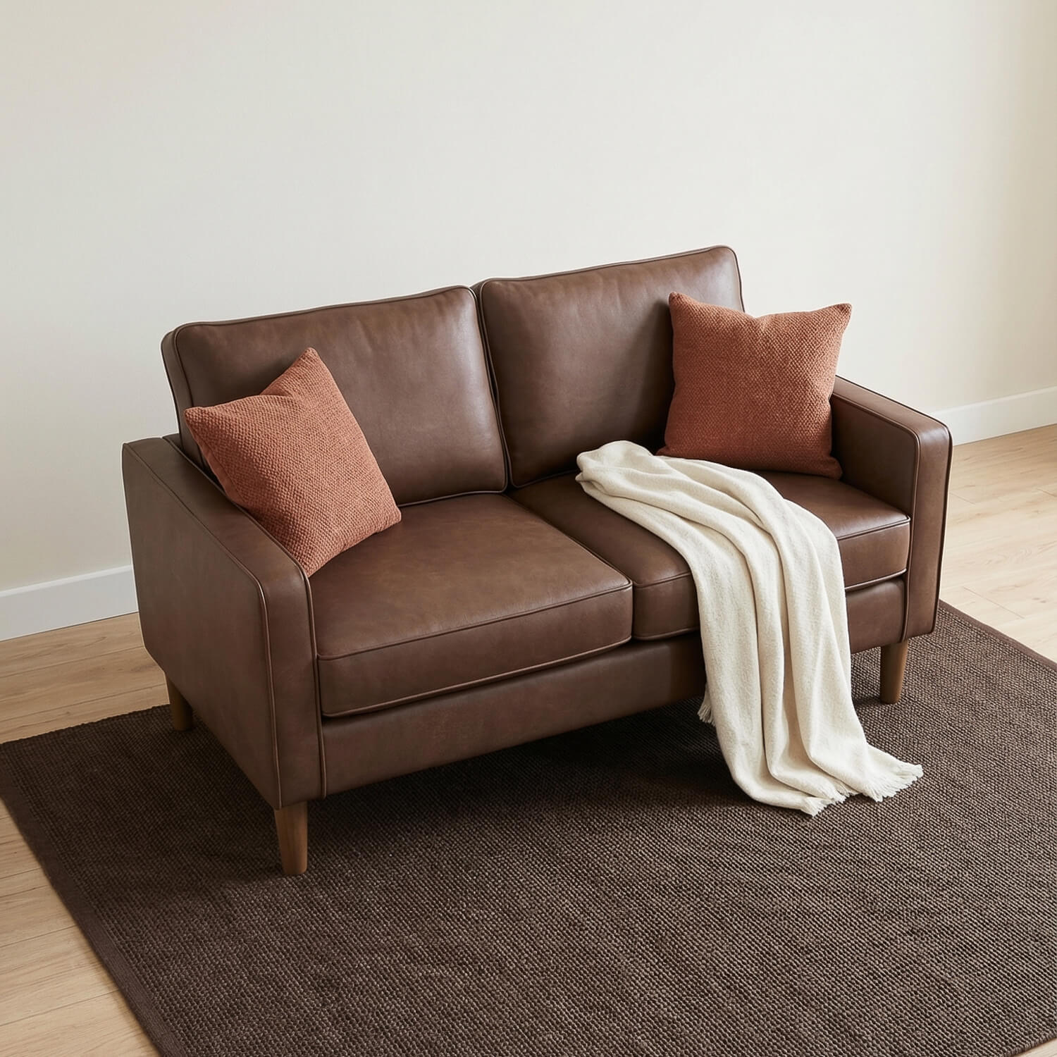 Looking for a stylish sofa without the stress? Theo delivers. This compact Chestnut Brown 2 seater brings effortless Sofabase value, pocket sprung comfort & durable faux leather. Built on a solid hardwood frame and finished with walnut legs, it’s the smart pick for smaller homes that still want big style. A reliable everyday sofa that just makes sense.