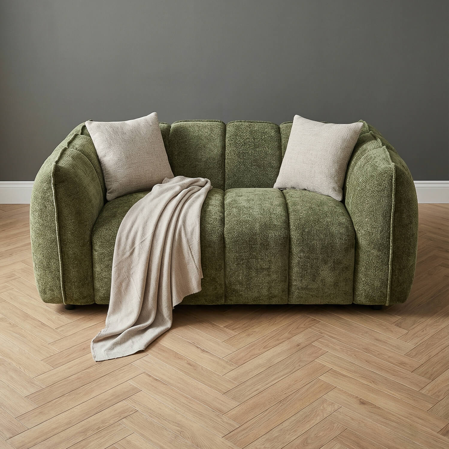 The Varella 2 Seater Sofa in Olive Green brings modern style and everyday comfort into your home. Featuring a striking channeled tufted design and deep cushioned seating, it delivers both support and visual impact. The rich olive upholstery adds character to any interior, while removable cushion covers make cleaning effortless. With one piece delivery and no assembly required, it is comfort made simple.
