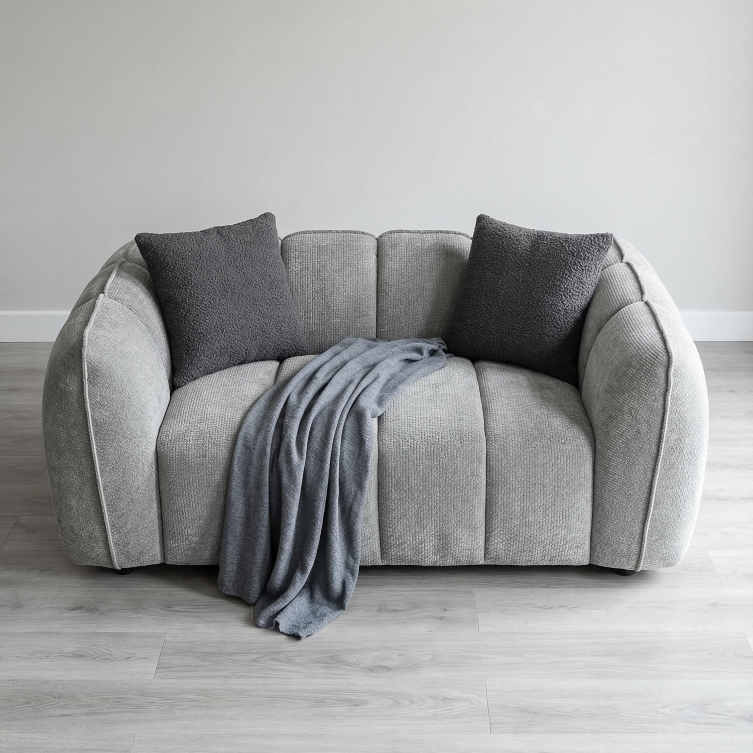 The Varella 2 Seater Sofa in Crystal Grey adds a clean, modern look to your space with its channeled tufted design and smooth, foam filled seating. The cool grey upholstery blends effortlessly with a variety of interior styles, while removable cushion covers make maintenance simple. Arriving fully assembled, this sofa offers style and comfort without any setup hassle.